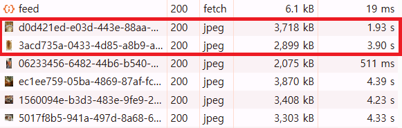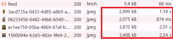 즉, 수 MB의 데이터를 내려받으면서 TTFB 이후 다운로드 구간이 길어져 네트워크 전송 비용이 증가하고, 원본 해상도를 그대로 받아 불필요하게 큰 리소스를 제공하고 있는 것이 문제였다.